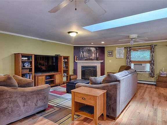 One level living at its best. This spacious, private, sun filled home sits on 2.4 Acres. Beautifully maintained Ranch offers everything you need. 3 bedrooms, 3 full bathrooms, large open family room which features gleaming hardwood floors, a wood burning fireplace and a skylight. Large kitchen with tons of cabinet space. French doors off the kitchen lead you to a large deck overlooking your park like yard which is great for entertaining your friends and family. Master bedroom with its own bathroom. Ceiling fans in all bedrooms. Full finished basement with its own private entrance is a great place to relax and retreat from it all. All siding was replaced at the end of March 2018 with insulated siding and comes with a transferable 25 year warranty. 12x16 lofted shed that's perfect for storing bicycles, sports equipment, holiday decorations, landscaping equipment and so much more. This gem is not to be missed. Call today to schedule a showing.