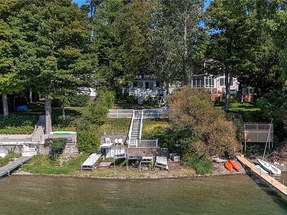 Amazing Owasco Lakefront property that offers TWO homes with 50 feet of almost level private waterfront. The lake cottage has an open floor plan with an island in the kitchen, full bath with laundry, wall of windows with sliding glass door that offers spectacular lake views, gas fireplace, hardwood floors, great space for entertaining, and three bedrooms on the second level. The cottage has both a patio surrounded by gardens, and a deck overlooking the lake, and multi docking system that goes with the sale of the property. The Main house has an open floor plan, expansive wrap around deck with lake views, patio off the back of the property. The easy living floor plan offers, hardwoods, gas fire place, beautiful full bath with tiled floor, tiled shower, and double vanity. There is also a half bath, family room on the first floor that could be a bedroom as a first floor master, laundry room and pantry. The main living area has vaulted ceilings, nicely appointed kitchen with tons of cabinetry, wall of windows with two sets of French doors, and an expansive lofted bedroom on the second level. Both dwellings offer the quintessential lake life experience.