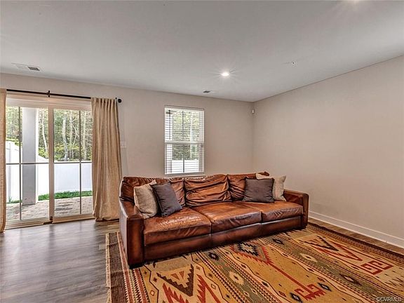 Like new (1 year old) 3-story craftsman-style END unit is move-in ready & full of decorative upgrades including scratch resistant & 100% waterproof engineered hardwood flooring, eye catching reclaimed accent wall made of maple wood from a historic building in downtown RVA-trimmed w/ cedar and pine, custom rustic bar lighting, faux brick wall & shiplap! This maintenance free vinyl/hardiplank siding home boasts 3 bedrooms, basement level rec room, 2.5 baths & 1,937 sq. ft.! Charming entry level walk-out basement flex space, spacious 2nd floor offers oak HW flooring throughout & a huge family room that opens to the gourmet eat-in kitchen w/ quartz counters, classic white tile backsplash, under cabinet lighting, SS appliances, gas range, pantry, large center island with bar seating & recessed lighting. The 3rd level features a spacious master suite w\ tray ceiling, walk-in closet and ensuite, dual vanity, walk-in shower w/ tile & double shower heads. This level also has 2 additional bedrooms w/ ceiling fans, a well-appointed full bath & 3rd level laundry. Front entry garage, concrete driveway, BRAND NEW fully fenced in yard, stone paver patio, 12x12 deck & tankless hot water heater!
