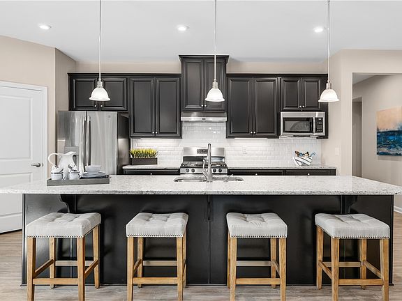 This "Palladio Ranch" single-family home is a masterpiece of main-level living. A large foyer welcomes you, with two spacious bedrooms on either side of the guest bath with dual vanity. The gourmet kitchen with island, stainless steel appliances and walk-in pantry flow effortlessly to the dinette and family room, which has enough space for gatherings of all types. Off of the family room is a large covered porch for outdoor entertainment. Your luxurious main-level owner's suite is a true retreat, with dual vanities, Roman shower w/tile surround, built in tile seat & dual showerheads and an enormous walk-in closet. Finished lower level with a bedroom and full bathroom for even more living space.