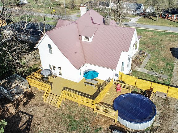 This gorgeous turn of the century historic home for sale in Lincoln County Kentucky has had the very best of care, many updates and is move in ready. Sitting on approx 3/4 of an acre in town in Hustonville Ky is where you will find this lovely 4 BR 2 bath home. It was built prior to 1900 and has over 3,300 Sq ft of living space. Sitting on this wrap around front porch will never got old ! Upon entering the home you will notice the incredibly tall ceilings, large updated windows and welcoming foyer area leading to the formal dining room on your right and a large bedroom with ensuite bath on your left. Right behind the dining room is a spacious living room and the updated kitchen is on the back of the home leading out to a deck and swimming pool that was added in 2019 that is perfect for entertaining. Upstairs you will find 3 more bedrooms with one of them having an adjoining room that would be perfect for a work at home office, nursery or HUGE walk in closet. The full bath upstairs is massive and truly a must see to appreciate it. This home has gas heat, central air, city water and septic. The back yard is completely fenced perfect for your pets and there is a large metal building.