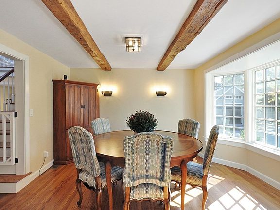 - Din Dscrp: Flooring - Hardwood, Window(s) - Bay/Bow/Box, Ceiling - Beamed