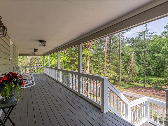 Cool post & beam mountain home on private wooded acreage bordering a sparkling creek! Remarkably, this sweet retreat is actually tucked away in a secret enclave surrounded by The Ramble Biltmore Forest neighborhood in South Asheville. Come feel like you are miles away yet enjoy the gated security, walking trails, green spaces and conveniences of this in-town treasure. Newly remodeled kitchen, primary suite and baths. Easy open floor plan on main level opening to inviting outdoor spaces. Well designed with ample flexible space and fantastic room over garage for working remotely or whatever you envision. Location, charm and incredible value! Not subject to Ramble HOA dues or restrictions.