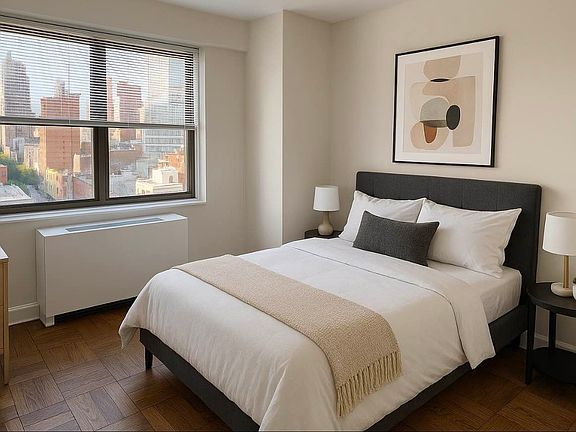 Large 1 bedroom is available in beautiful doorman elevator building with elegant driveway on-site laundry and roof deck with gorgeous city views.