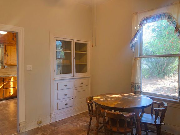 High ceilings and framed windows. This 1915 corner lot, site built house is walking distance to downtown Globe. Off street covered parking, pomegranate tree, storage shed and fully fenced yard. Large family room, living room with beautiful French doors leading into the dining room showcasing the beautiful craftmanship of the built in hutch. The kitchen has high custom cabinets and pantry off to the side. Additional room used for laundry plus more... the options are endless. The two bedrooms share a jack and Jill style bathroom with an added large bathroom off of the family room. This home is a must see call you agent today!