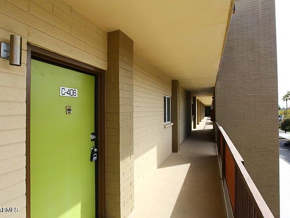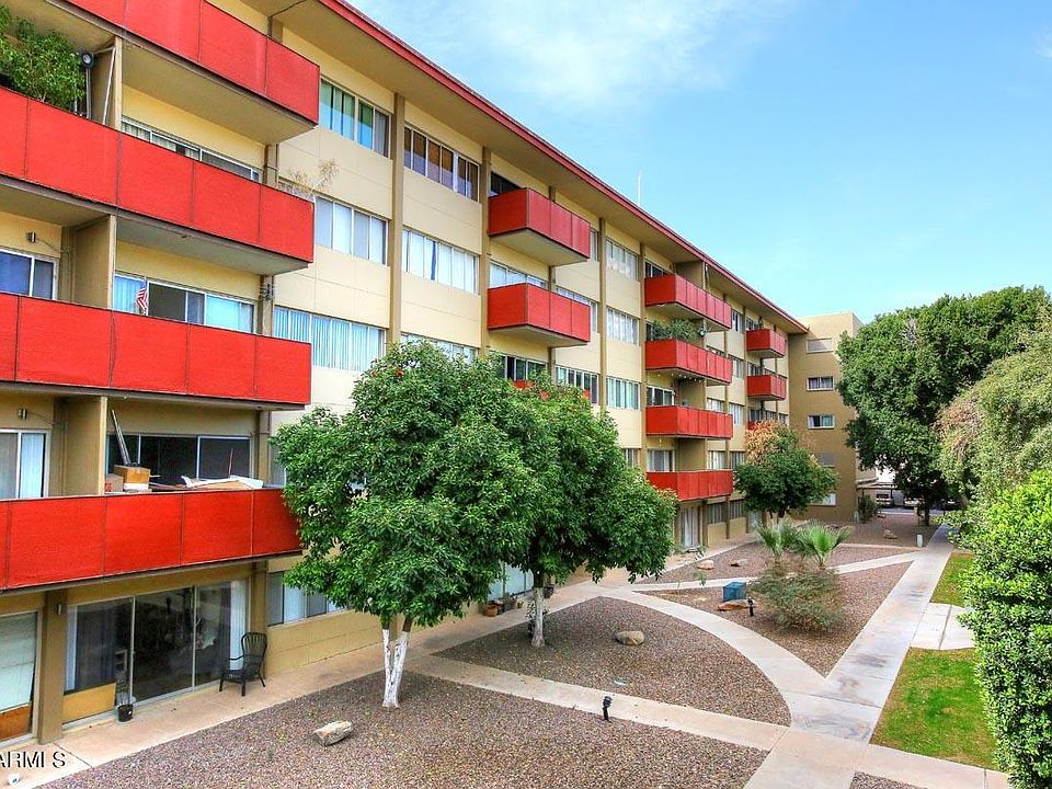 Centrally located mid town Phoenix condo within walking distance to light rail. Gated all inclusive community includes 2 community pools, all utilities - electric, a/c, heat, water, sewer, trash, exterior maintenance, one covered parking and personal storage unit included. 2 bed/2 bath unit with both bath remodeled and updated front 3 windows. New paint through out. Faces north with mountain and city views from your private balcony. Community laundry within complex as well as hot/cold water outlets available in unit but needs electrical outlet. Seller has never occupied unit - limited knowledge. Home inspection available for review - sold as-is. Complex may not qualify for FHA or VA - check with lender.