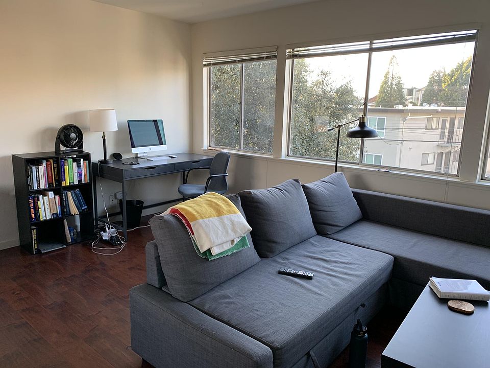 I am moving in with my girlfriend and so have to give up my beautiful, sunny apartment on the top floor of a building in Adams Point. Apartment has huge windows on each wall so gets a lot of light at all times of day. New hardwood floors, and a tree in the bedroom window giving privacy and some filtered light. Quiet building with respectful tenants. Neighbourhood is (I am biased), one of the nicest in Oakland and the East Bay more generally. Can walk down the street to Lake Merritt. Trader Joes and the Saturday Lakeshore Farmers market are walking distance or a three minute drive. Whole foods is also very close. Getting to downtown is really easy with the bike-share nearby. The 580 freeway is around the corner which is perfect for commuting. The street is beautiful, quiet and peaceful. Great price for a place with plenty of room, 550 square feet. Living space is large can fit much more than I have in it, which is a sectional and a desk. Gated (!) parking in the building is available for an additional $110 a month (which is market rate), street parking is free but getting a space can be competitive. Requirements: 1) Gross income exceeding three times monthly rent or be financially stable. 2) Good credit or willing to pay a higher deposit. For the application you will need: 1) Completed Application 2) $35 dollar application fee (for the credit check). 3) Proof of income (payroll stub or bank statements). 4) Drivers License or Passport Owner pays Water and Garbage. $2100 dollar security deposit.