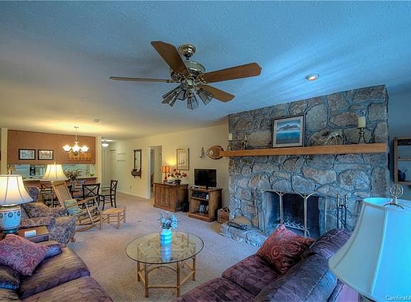 Highly coveted ground level condo on the golf course w/ mountain views on the 12th green & the 13th fairway. High-quality 2BD/2BA, wood fireplace, local stone, cent-HVAC, walk-in closets, laundry room, covered porch, carport, golf cart garage/storage. This deed protected home is central to everything here at the top of the world in Spruce Pine, NC-- 5 min. to downtown or Blue Ridge Parkway, 20 min. to I-40 or Lake James, 45 min. to Asheville, 2 hr. from Charlotte.