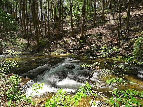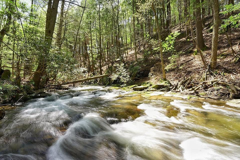 Listen to the roar of Turniptown Creek from inside the property and on the back screened porch. There are a few waterfalls in your backyard to enjoy. Build a fire pit right beside the creek. Property is a fixer upper and needs some work but could be a place you can call home, or a vacation spot or vacation rental. Wood burning fireplace in the original part of the property with a living area, bedroom, bath and eat-in kitchen. Off the sliding door is a large screened in porch. There is an addition with a large great room and upstairs master bedroom and bath. The property is about 2 minutes to the gate for easy access. If you are looking for a place on water don't miss this one!
