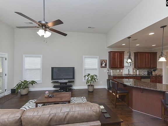 Nestled on a pond lot in Lake Carolina, this 1 1/2 LEVEL 2332 sf 4 bedroom, 3 full bath BEAUTY is MOVE-IN READY! An inviting front porch escorts the owner thru a beautifully crafted front door. Hardwoods adorn the common areas of this Blue Ribbon Homes plan. Excellent for entertaining, the Great Room is decoratively open with lots of natural light, cathedral ceiling, and plenty of room for your over-sized furniture. High ceilings, recessed lights, and gas fireplace are highlights of this common area. The kitchen, complete with bar for 4 bar stools, highlights granite countertops, tiled backsplash, recessed lights, oil stained cabinetry, and SS appliances. The spacious private Master Suite has high smooth ceilings, private bath with double vanities, oil rubbed bronze finish on all hardware, plumbing and lighting fixtures with garden tub and separate shower. The adjacent 2nd/3rd bedrooms are private from the Master Suite with their own shared bath. The spacious 4th bedroom is located upstairs with private full bath, could also be used as a Bonus R. Looking for storage? Lots of walk-in storage on 2nd floor with easy walk-in access. Spacious garage is large enough for truck and SUV and the screen porch and patio provide solace at the end of your busy day! Immaculate landscaping, surrounded on the left and right by rear wood privacy fences, open to the pond for relaxing water views. The HOA includes a neighborhood pool, playground, and sheltered picnic area. Home is a MUST SEE!