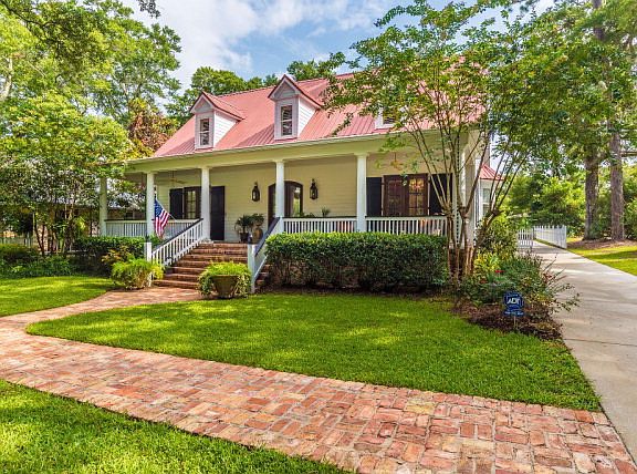 Beautiful custom built historic style N. Carolina cottage located in sought-after and well established neighborhood. Walk up Old Chicago brick steps to 48' wide Southern style front porch w/ gas lanterns that welcomes you into a home designed for entertaining. Every detail has been carefully selected & quality crafted. Features include treasured Live Oaks - front & back, metal roof, Brazilian Cherry flooring, Natural Stone in all baths, approx 900 SF of porches, gourmet kitchen w/ bay window, master down, split bedrooms up, large laundry room w/ extensive cabinetry, guest quarters w/ bath (approx 567 SF & house 2915 SF). Sunroom/Den offers extensive use of glass to view sparkling salt water pool & waterfall. Location of home offers easy walk to downtown Fairhope for parades & festivals, or use neighborhood bay access to enjoy Mobile Bay's sandy beach. See Feature Sheet in Docs. USE 353A GRAND AVE AS ADDRESS!
