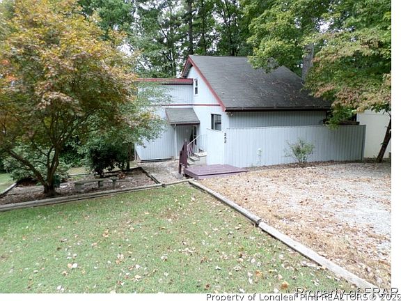 -Wonderful home tucked in the trees in a secure Gated Lake & Golf Community. Large Vaulted living room opens onto quite deck surrounded by shade trees. Enjoy your afternoons with a walk to the neighborhood marina & pool. Kitchen recently updated/plenty of cabinets & storage. Master down & up both with full baths. Double parking out front and home backs up to common area. Conv to RTP & Fayetteville