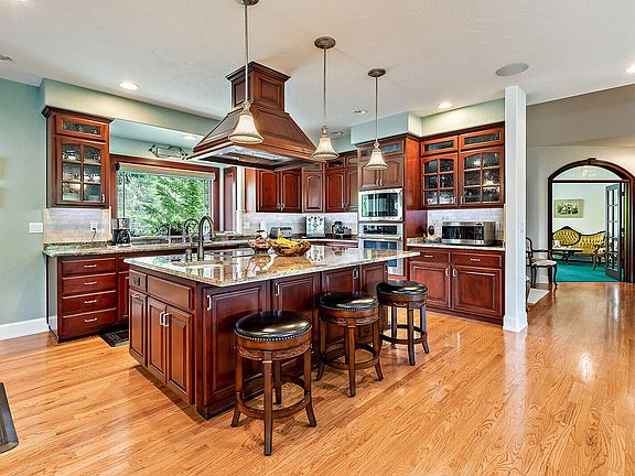Bold Exquisite Luxury, this 4200+ Sqft house has solid Alder doors, Cherry wood kitchen cabinets and Granite counter tops through out the home. Guest quarters in shop w/bathroom & shower & washer/dryer. There are klipschorn surround ceiling speakers in the master bedroom & ceiling speakers in the kitchen, master bathroom & on the patio. Home delivers spectacular grounds including a 30 x 60 fenced garden area with Strawberries, Grapes, Tomatoes, Apples and Peach trees.The shop is 2040 Sq.Ft. with 4 bays for additional parking or workshop. There is a full bath and washer & dryer connections. There is also a 23 x 25 ft. dog run attached to the dogs covered enclosure. Find Exceptional details expected in a Luxury Estate Property with the Gourmet kitchen equipped with Sub-zero fridge,walk-in pantry, & high end appliances.. The Master Suite offers a Walk-in closet with custom cabinetry, sitting area & spa-like bathroom retreat with heated tile floors. House generator too.