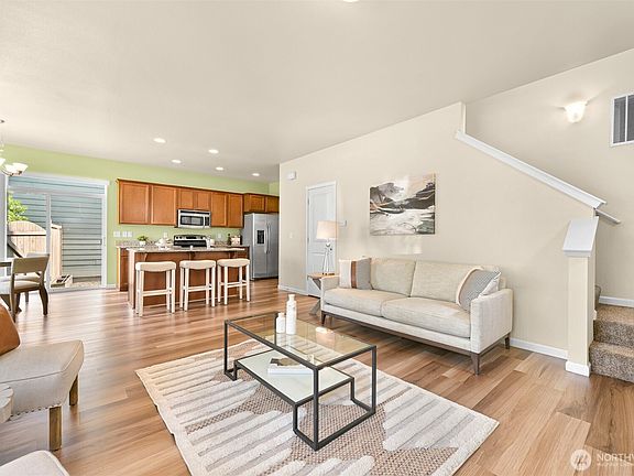 Welcome to this beautifully maintained 3-bedroom, 2.5-bath home offering 1,495 sq. ft. of comfortable living space. Built in 2012, the open-concept main floor features a spacious kitchen and living area centered around a cozy fireplace—perfect for gatherings. Upstairs, the large primary suite boasts a walk-in closet and private bath, while two additional bedrooms share a full bath. The conveniently located upstairs laundry makes everyday living a breeze. Outside, enjoy a fully fenced yard, two-car garage with alley access, and close proximity to the community playground and basketball court. A wonderful blend of comfort and convenience awaits!