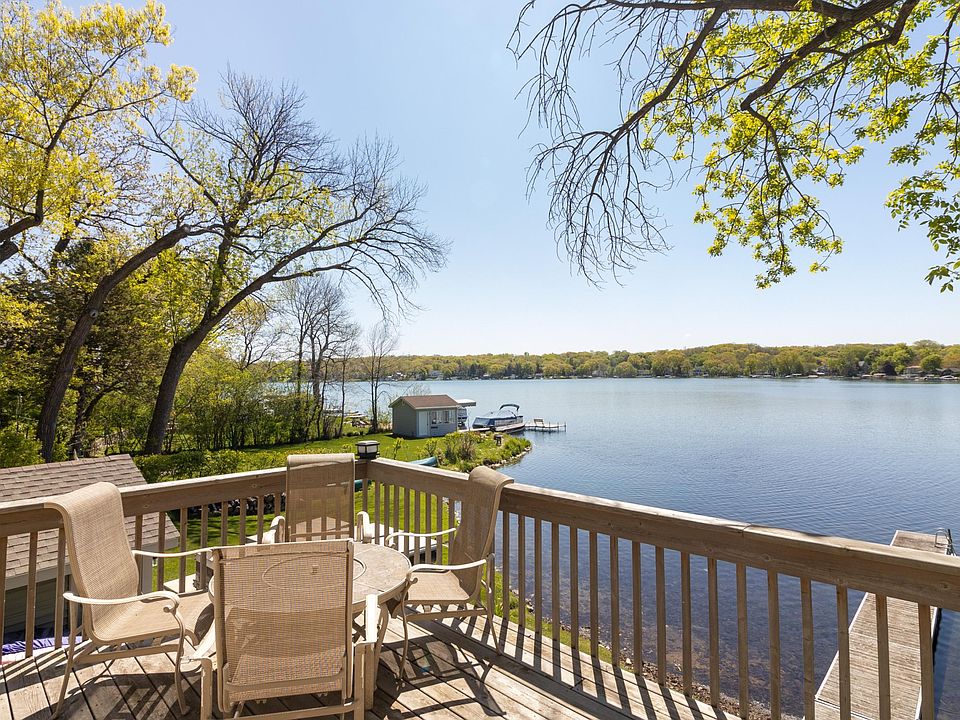 Amazing lakefront screened in porch is just one of the outdoor spaces you can take in the amazing views of Lake Mary. With 50' of sandy frontage you can enjoy a day at the lake swimming, boating or just hanging out on your private pier. A lakeside deck is a great place to soak up the sun or enjoy dinner. 3 bedrooms and 2.5 baths. Main level has an open layout with 2 bedrooms. The 2 garage and large driveway has plenty of parking for family and friends. The main bedroom is on the upper level with a private balcony with lake views and an on-suite bath with a separate tub. Includes whole house generator. Lake Mary is an all-sport lake and spring fed. You can water ski, fish, swim or just enjoy the natural beauty of the lake. Minutes to Lake Geneva and Wilmot Mt
