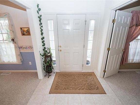 **LOCATED JUST 7/10 MILE FROM COUNTY LINE RD AND MINUTES FROM WEBSTER, this well maintained and loved 2001 built Ranch home is situated on 5+ acres with an outbuilding/barn. Perfect for horses, car enthusiast, storage and more! This home may appear as a cape cod, but is one level living at its best. Features include covered front porch, 2-story foyer open to dining rm, vaulted living room with wood burning stove, open to kitchen with breakfast bar island with sink and dishwasher, recessed lights and eat-in area. Slider to 3-season enclosed porch overlooks yard. First floor laundry with utility sink. Master bedroom suite with walk in closet and spacious bath. 2-car garage with automatic door opener. HUGE, dry basement. Barn currently has stalls for horses, but can be converted.
