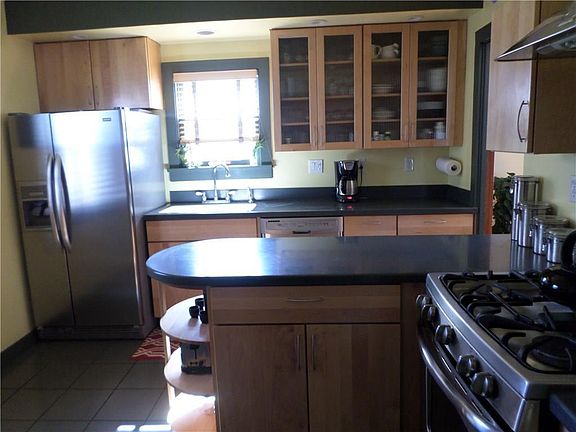 This charming colonial offers 3 bedrooms and 1 updated bath. Leaded glass shines on gleaming hardwood floors throughout. Impressive updated kitchen with solid surface counters, maple pantry, stainless steel appliances and island. French doors lead to a deck that steps down to a patio that overlooks a private fenced yard. Partially finished basement with 2nd kitchen. New exterior siding. 2.5 car garage with a walk up loft with lights, electric and workshop. Architectural tear off roof and more.