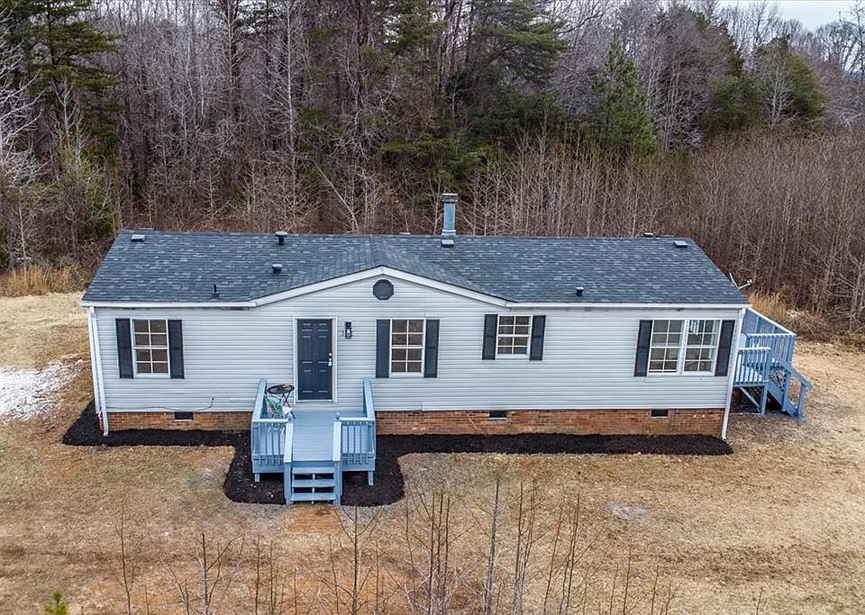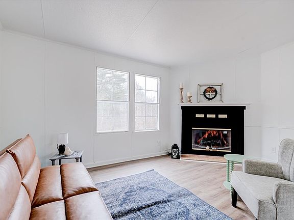 This charming doublewide in Chatham offers 3 bedrooms and 2 full baths, with a private primary suite. Enjoy a spacious front porch and a large side porch accessible from the kitchen, complete with steps leading up from outside. The living room includes an electric fireplace, adding warmth and charm. Recently updated with new LVP flooring, fresh interior paint, and tile in the bathrooms, this home also boasts a modern kitchen with stainless steel appliances. Situated on 8 acres of land, the property features water frontage providing direct access to a serene lake. Perfect for peaceful living and outdoor recreation!