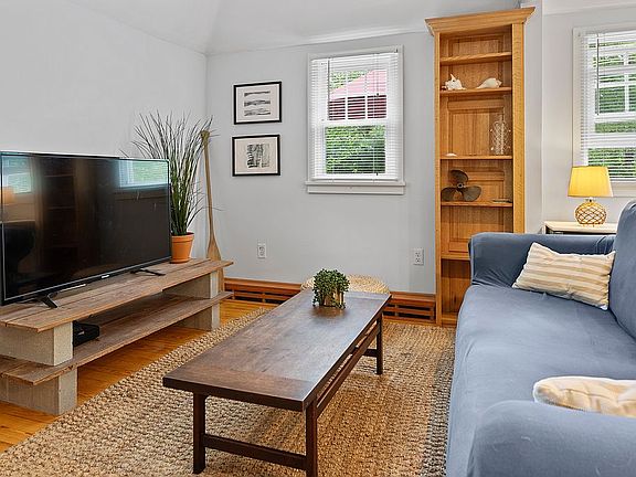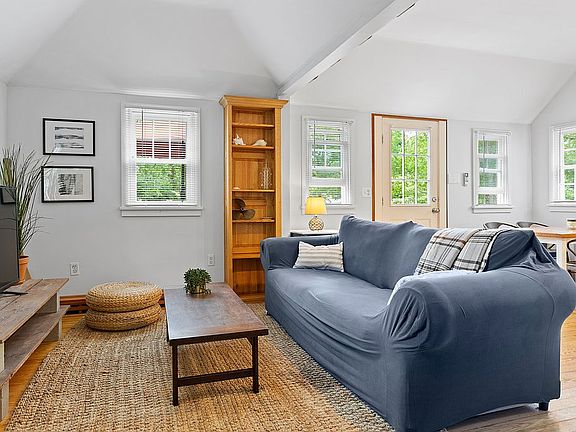 You are going to fall in love with this craftsman style cottage! Enjoy your morning coffee on the large Trex deck with built-in benches surrounded by beautiful shade trees. This home has a terrific lawn, lots of beautiful plantings, and a large outbuilding that can be used as a storage shed or a hobby spot. Once inside you are greeted by a beautiful eat-in kitchen with upgraded cabinets, southern pine floors and cathedral ceilings. The living room, sitting area with a wood stove, and both bedrooms all feature southern pine floors and cathedral ceilings. A large bath/ laundry room round out the floor-plan for one floor living. The cathedral ceilings and raised panel natural fir doors give this home an open and warm feeling that will make you want to stay.