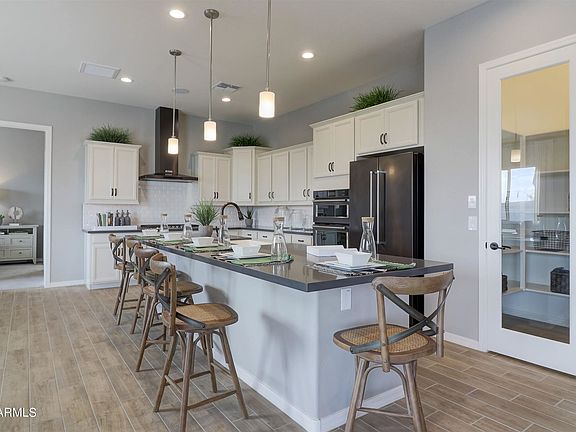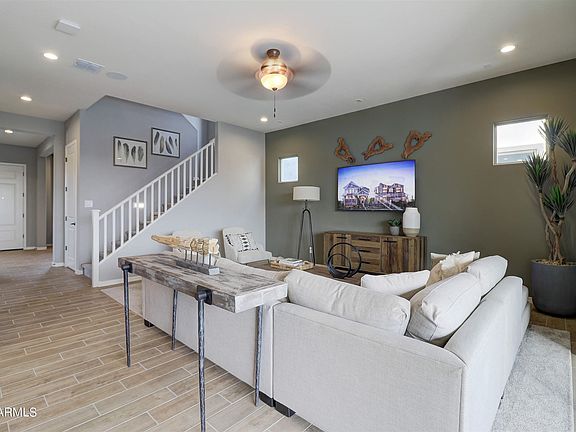 Gorgeous, fully furnished 4 bedroom model home with pool & over $200,000 in upgrades in a gated community, just a mile from the I-10 with easy access to the Phoenix valley, shopping, entertainment, recreation, hiking & dining.This beautiful home has a gourmet kitchen, walk-in pantry, sparkling pool & manicured backyard with travertine, perfect for entertaining. 1st floor has an in-law suite, 2nd floor has a loft, the Master bedroom with walk-in shower, two more bedrooms & laundry room. Roosevelt Park Community has resort-style pools, barbecue areas, parks, play structures, volleyball, & walking/biking trails. This amazing home that was thoughtfully staged by an interior designer in a community with all the amenities you need.