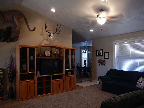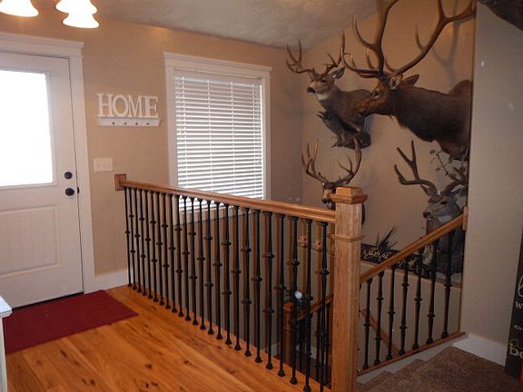 This NEAR NEW HOME is in new condition with all the hard work done. Beautifull lawn with sprinkler system, curbing, a garden spot, and a new cedar fence, all in top condition. The home also has a large covered front porch and large covered walk out back patio great for enjoying a BBQ. The front entrance has hickory hardwood flooring and a beautiful open stair case done in hickory and wrought iron. The living room is spacious and opens to the dining room and kithcen that also are done in hickory hardwood floors. The kitchen cabinets are custom built hickory cabinets with staggered heigthts and widths giving a upgraded look to the area. The master bedroom is nice sized with a walk in closet and good sized bath with separate jet tub and shower and tiled floors. The basement has a lot of room to expand and is plumbed for a full bath and could ahve a great family room two more bedrooms and a large storage room. The side of the lot could be used for animals or additional yard area. There is a water and power line run on the south side of the lawn to accomodate future building if desired. Another great feature is the additional concrete parking pad on the north side of the home. This hoem is immaculate and well maintained. Get in quick to see this great country home.