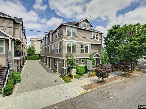 Accepted Offer with Contingencies. Like New 2016 Townhome. End unit! Charming covered front porch. Bedroom on main with hardwoods, slider to fenced patio. Wall of windows in living room with pleasant city view. Modern open kitchen with quartz tops, breakfast bar, gas range, and balcony with a view. Two bedroom suites up and laundry. Comfortable modern layout. Attached garage. Close to shops, restaurants, Legacy Emanuel, New Seasons. All appliances stay! Move in ready!
