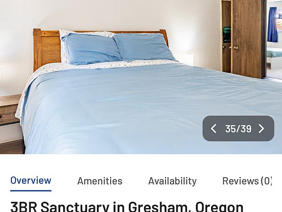 Enjoy the heartwarming charm of this single-story abode nestled in the serene environs of Gresham, Oregon. Designed with thoughtfulness and care, this home boasts 1400 square feet of comfortable living space, ideal for those who cherish indoor elegance and outdoor tranquility. Step into the inviting atmosphere of the primary bedroom, a peaceful retreat featuring a cozy queen-sized bed, two standard closets for ample storage, and an en-suite bathroom with a walk-in shower and single vanity, ensuring privacy and comfort. The second and third bedrooms, each furnished with full-size beds, standard closets, and nightstands, offer additional cozy spaces for rest. The heart of the home is a living area that exudes warmth and comfort, highlighted by a plush sofa, a coffee table perfect for gatherings, a smart TV for entertainment, and a fireplace that adds a touch of coziness to any Oregon evening. The kitchen, seamlessly blending functionality and style, is equipped with modern appliances, including a dishwasher, full-size fridge, electric stove, and microwave, complemented by a coffee maker and toaster oven. The dining area, welcoming with a table set for six, invites shared meals and memories. Flooring throughout the home combines hardwood's timeless elegance with tile's practical beauty, enhancing the overall aesthetic. The outdoor space is equally captivating, featuring a front porch and deck furnished for relaxation, a gas grill for culinary adventures, and a creek that murmurs a calming backdrop to this picturesque setting. Convenience blends with nature, as shopping, parks, and restaurants lie nearby, complemented by easy access to public transportation. Driveway parking and a ring door camera provide added security and peace of mind, making this Gresham house a sanctuary you'll love calling home. Book now! It's mid-term rental ( 1 to 3 or 6 months)