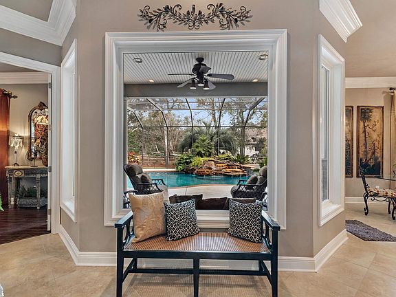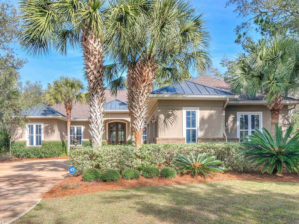 Exquisite custom home on a large private lot in The Peninsula Golf and Racquet Club, a gated community in Gulf Shores, Alabama. Luxury upgrades exist throughout the home: Dramatic accent lighting inside & out. Superb finish carpentry throughout and built-in custom mirrors. The nearly 2,000 sq. ft. screened-in lanai features a heated, saltwater gunite swimming pool with a rock garden waterfall and adjoining hot tub, several seating areas and firepit, as well as outdoor kitchen with grill! The gourmet kitchen has custom cabinetry including built-in fronts for the Sub Zero oversized refrigerator/freezer and Bosch dishwasher. Also featured is a Wolf 4 burner & grill gas top stove and electric oven, a Sub Zero wine cooler and new Scotsman ice maker. Copper sinks with prep sink. Instant ice-water/hot-water system. Adjoining the kitchen is the family room with custom-built in cabinetry and mantel with a gas fireplace. The primary bedroom suite features a luxurious bath with large walk-in shower, custom cabinetry with marble counter tops & brass sinks, a built in fireplace over the jetted tub, two large walk-in closets and a private sitting area. There are 3 additional bedrooms with 2 baths (one of which is an ensuite) and a powder bath. Formal dining room, living room and study. NEW ROOF (2021) AND HVACs (2019). Interior furnishings and the adjoining lot may be purchased, separately. The Peninsula, a gated community that features a 27 hole championship golf course with clubhouse and grill along with a mile-long stretch of sandy bay shore along Bon Secour Bay with pier and gazebo. Additional amenities include a fitness center, large indoor & outdoor pools, 8 hydro-court surfaced tennis courts and acres of nature preserves and walking trials. The club has a reciprocal arrangement with The Beach Club Resort, a short distance away on the Gulf of Mexico.