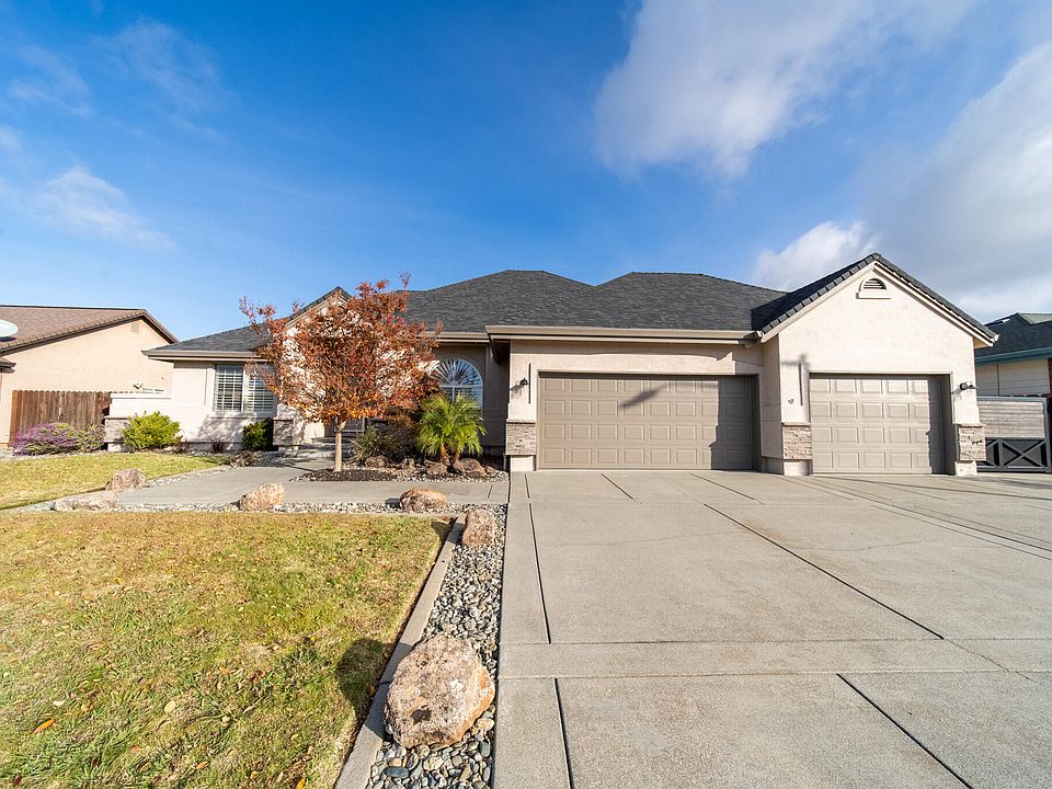 Outside, the property backs up to a city-owned greenbelt, offering added privacy and tranquil, unobstructed mountain views from your backyard. The oversized 3-car garage provides plenty of storage and workspace, catering to all your needs. The River Park Highlands subdivision is known for its scenic surroundings and convenient access to Redding's best shopping, dining, and recreation. Don't miss out on this rare find that combines elegance, practicality, and an unbeatable location!