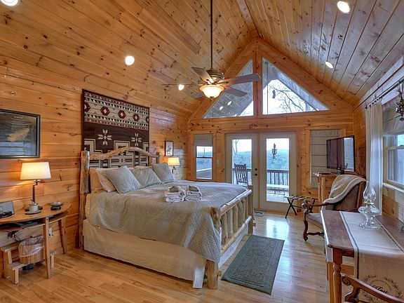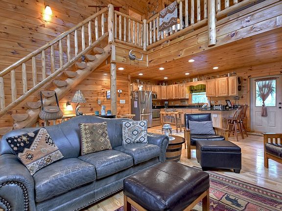 Amazing cabin with long range mountain & pastoral views from each room! Master Bedroom on Main & Upper Level, sleeping loft, large kitchen suitable for the pickiest chef that overlooks the great room, your choice of fireplaces to sit by as they are located on the main & lower level as well as outside on the expanded main level deck area. Spacious bedrooms & baths, a rec room, and a great play area for both children & pets. Perfect investment property as it's already on successful rental program and comes turn key with upgraded rustic furnishings!