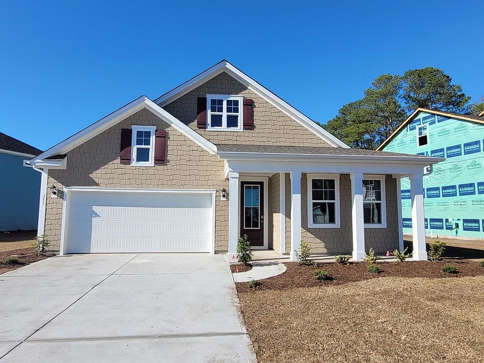 Waterbridge community is in the sought-after Carolina Forest area. Minutes from grocery stores, shopping centers, golf courses, attractions and the beach! The community is filled with resort-style amenities that make it hard to leave home. This gated community features a clubhouse, the “largest residential swimming pool in SC”, fitness center, tennis, pickleball, basketball, volleyball, and bocce ball, a lake and boat launch! The Darby offers a tall entry door with glass, a split bedroom floorplan, and an open concept kitchen, living, and dining area perfect for entertaining! Granite countertops, 36" cabinetry, stainless appliances with a gas range, and gorgeous LVP flooring throughout the main living areas. There is also a flex room on the main level which would be great for a home office or formal dining room. The primary bedroom suite is a must see with a huge walk-in closet and en suite bath with two large separate vanities and a 5' shower. This home also features a rear covered porch offering an ideal space for outdoor enjoyment! *Photos are of a similar Darby home. (Home and community information, including pricing, included features, terms, availability and amenities, are subject to change prior to sale at any time without notice or obligation. Square footages are approximate. Pictures, photographs, colors, features, and sizes are for illustration purposes only and will vary from the homes as built. Equal housing opportunity builder.)