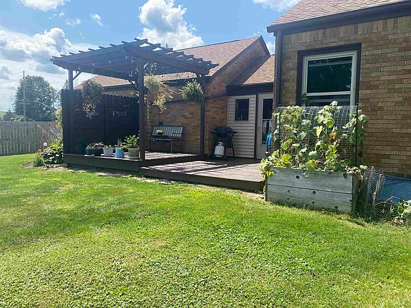 This 3+ bedroom home on the South side of Pearl City is all tan and brown brick exterior with a matching color roof and an attached double plus garage. Large hardwood floored kitchen and a formal dining room and large living room with a brick, gas fired fireplace lead into a full bath and two bedrooms. There is a main floor laundry with a half bath to make for easy care. A upstairs carpeted room could be another bedroom or craft room. There is also an unfinished, floored, 18.9 by 11.5 floored attic room that would be easy to convert to a playroom or hobby room. The full basement has another brick fireplace, a cement floor waiting to be painted or carpeted, and a wood bar counter waiting to serve your guests. There is also a 14'9 x 9'7 attached breezeway between the kitchen and the large workable garage and a freshly stained double deck outside to entertain on. A small outside building and a large yard complete this home.