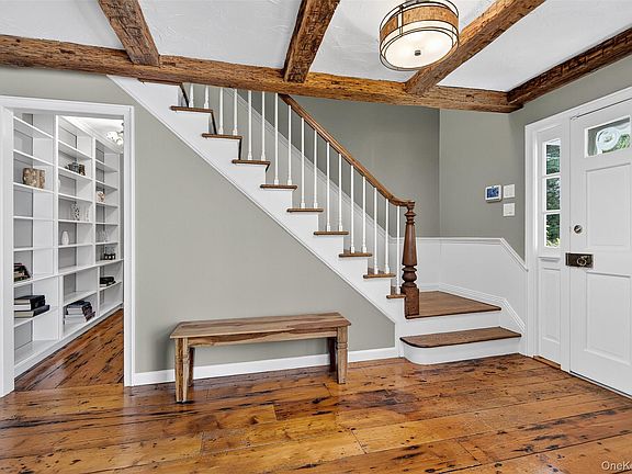 Privately set on 2 magnificent acres, this stunning Farm Ranch Colonial offers the perfect blend of timeless charm, modern elegance, and everyday comfort. From unique architectural details and beautiful wood floors to expansive windows that frame views of the gardens and pool, every corner of this home exudes warmth and sophistication. With 6 spacious bedrooms and 4 full baths, the layout is both functional and inviting. The sun-drenched kitchen is a true showstopper—featuring granite countertops, stainless steel appliances, custom cabinetry, and gas cooking—seamlessly flowing into a cozy den with a fireplace, ideal for gathering with loved ones. The primary suite is a private sanctuary, complete with a generous bedroom, luxury en suite, and a dressing room outfitted with custom built-ins. Additional bedrooms offer plenty of space for family or guests. Two fireplaces, a welcoming layout, and abundant natural light make this home an entertainer’s dream. The full basement with high ceilings offers endless possibilities—whether you're envisioning a gym, media room, recreation space, or wine cellar. Experience the lifestyle you've been dreaming of in a home that offers space, style, and serenity—inside and out.