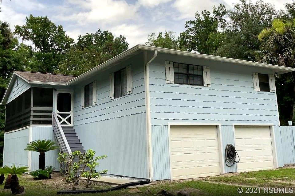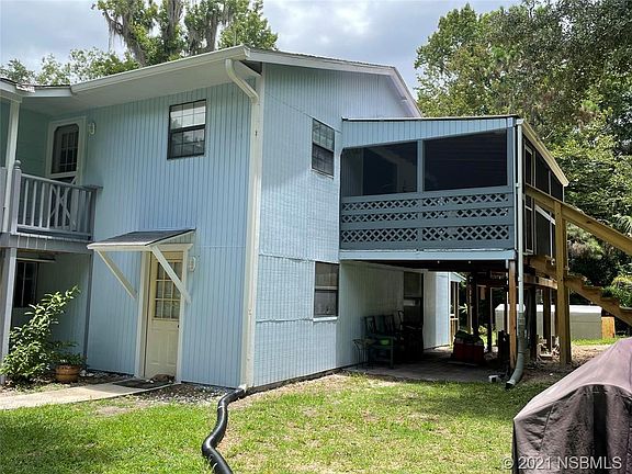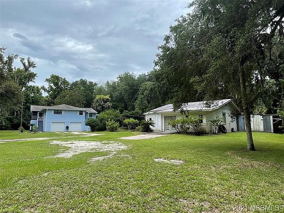 5-Acre country estate with a mostly cleared lot that is nestled within a majestic hard wood Hammock located near the very desirable city of Oak Hill, in Southeast Volusia County. This tranquil and peaceful property has every thing you need to enjoy the natural Florida beauty without compromising on space or location. This unique and magnificent property features ample living space, with three nice sized bedrooms and a small office. Also included is an approximately 586 sq. ft. fully equipped ground floor "In-Law Suite" with its own kitchen, bath, covered patio, two split bedrooms, and its own dedicated entrance, yet connected through an interior stair case. Most of the first floor is a covered garage/work shop (approximately 850 sq. ft.). There is also approximate 2300 sq. ft. of outbuilding (partially air conditioned) that can be used for a home business/garage/shop or for storing toys, featuring concrete block construction with concrete floors, concrete loading dock, and possible 400-amp service. This outbuilding needs some TLC due to water damaged drywall and insulation from a leaking roof, but with a little work can be a real diamond in the rough... Property has several carports and storage sheds that are also in need of some TLC. All of these buildings are very nicely distributed throughout the property, not taking away for the natural beauty!!! Measurements are approximate. Buyers to verify all building dimensions...