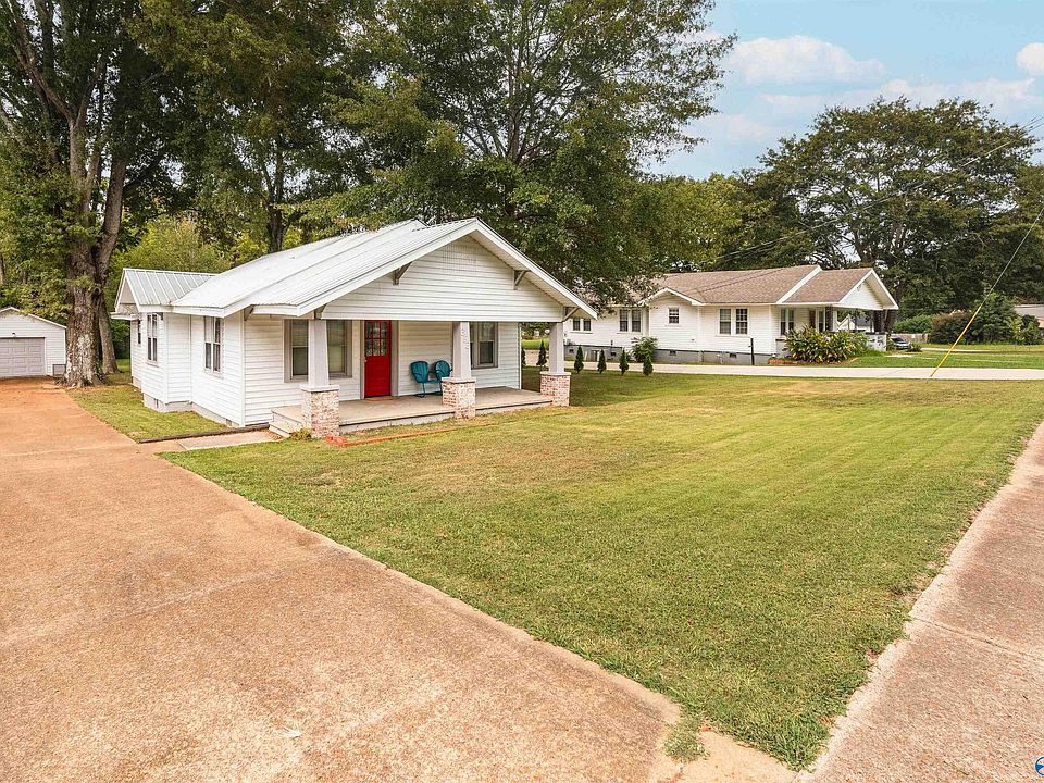 Move right in to this 3 bedroom 2 bath home with hardwood floors throughout! The living area leads 2 the dining room and 2 of the 3 bedrooms. The isolated master is in the back of the house with a private bathroom. Enjoy the outdoors with a huge back yard with mature trees. Just around the corner from Arab High School and close to shopping and downtown. The vinyl siding and metal roof mean almost no maintenance to the exterior. Call today to make this your home!