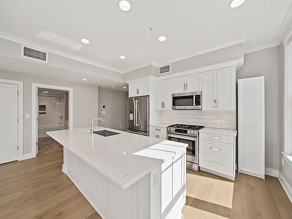This 2018-built 2-bedroom unit is situated in one of Somerville's most desirable locations. The sunlit, south-facing home offers an open-concept layout with four large windows and motorized blinds in the living room and kitchen. The stylish kitchen is equipped with Bosch stainless steel appliances and a beautiful quartz island countertop.Throughout the home, wide-plank engineered oak floors and elegant crown molding add a touch of sophistication. The spacious main bedroom features an oversized walk-in closet and a floor-to-ceiling soundproof window, offering a peaceful view of the street. Other highlights include in-unit laundry, a tankless water heater, central HVAC, and smart home features like a EcoBee thermostat and video intercom. This professionally managed building includes two garage spaces and is located just 0.3 miles from Davis Square, the bus terminal, restaurants, and Benjamin Brown Elementary School. With a Bike Score of 99. A commuter's dream. * Tenant(s) are responsible for gas, electricity and internet. * Water & sewer, snow removal, landscaping, 2 garage parking spaces are included in the rent. * Tenants are required to cooperate with occasional showings, with a maximum number to be agreed upon. For a long-term lease, the landlord is open to removing the sale listing.