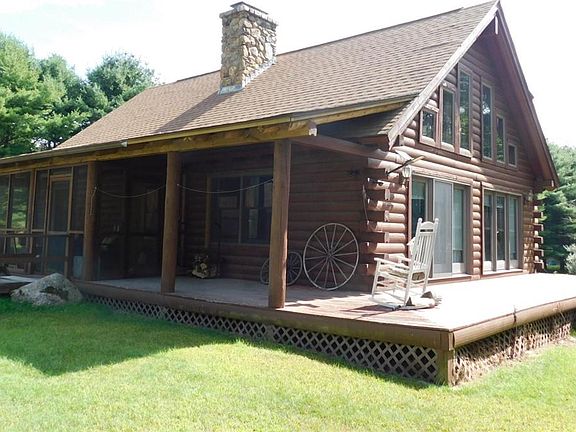 Experience the warmth and charm of true log home living! This property is nestled in a picturesque, rural and beautifully landscaped 2+ acre lot that abuts Arcadia Management Park. It features cathedral ceilings, open floor plan, hardwood floors throughout, gorgeous field stone hearth with Soapstone wood stove, option of first or second floor master bedroom, spacious open family den with open balcony, wrap around porch, green house, two additional sheds, and a detached 2 car garage with a third bay add-on and living quarters above with a kitchenette, bathroom, old fashioned cooktop wood stove, cedar walk-in closet and knotty pine tongue and groove throughout. Short drive to highway access, restaurants, shopping, golf and recreational facilities. Connect to nature and enjoy camping, hiking or exploring nearby trails just steps from your backyard. Whether you’re seeking a private vacation getaway or a year-round home, this log cabin combines natural beauty with a peaceful country lifestyle!