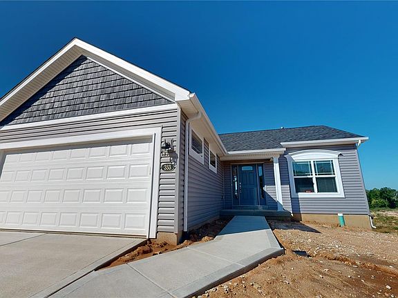 ***QUICK MOVE-IN HOME - Close in 30-45 Days*** The Acorn at home site #184 in The Estates at Huntleigh Ridge. 3 BR, 2 BA ranch home w main floor laundry offering 1,279 Sq. Ft. on walk-out homesite in Wentzville. Modern, open floor plan w vaulted ceiling & ceiling fan at great room, open to eat-in breakfast cafe and deluxe kitchen w granite countertops, staggered cabinets over microwave, crown molding at cabinets, center kitchen island, soft close kitchen cabinets. Stainless steel appliances. Owner's suite with walk-in closet and private bath. Lower level includes sump pump and pit, 10 yr foundation leakage warranty, plus 3/4 rough in. Architectural shingles, Full yard sod and landscaping package plus 2-car attached garage with remote openers included. Available for occupancy in August 2023.
