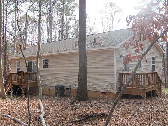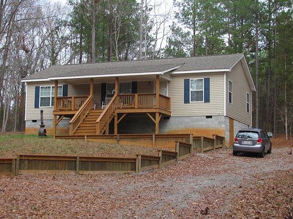 Built in 2009, this off-frame modular is just like new! Very private location with terraced landscaped yard, gravel drive-way and great shop/storage building. Open living/dining area with galley kitchen with bar, laundry room with exterior door onto small deck, split bedrooms with master bed and bath on one end of home and 2 bedrooms and hall bath on opposite end. Sliding glass doors onto deck off dining area. Use of Warren County Acres boat access area is available and is nearby. Great starter home. Quick access to Food Lion Shopping Center, gas station, drug store & other shopping. Gas range & water heater. Heat pump with propane gas back-up.