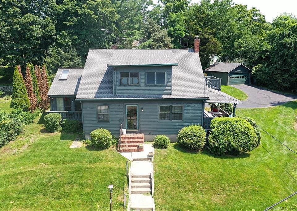 This home is set back and perched above the main road with a private stonewall lined driveway into a welcoming back yard. A detached two car garage with large paved driveway allows ample parking and storage space. The house has a comfortable layout with a lot of living space; formal dining and living rooms as well as a sun lit family room off the kitchen with two skylights and three sliding doors to a backyard patio and front balcony . Sliding glass doors off the living room to a covered deck, offer local views and western sunsets. Master Bedroom with full bath, walk in closet and balcony with southern exposure for sun all day long! Both full baths have skylights creating a bright and open feeling.