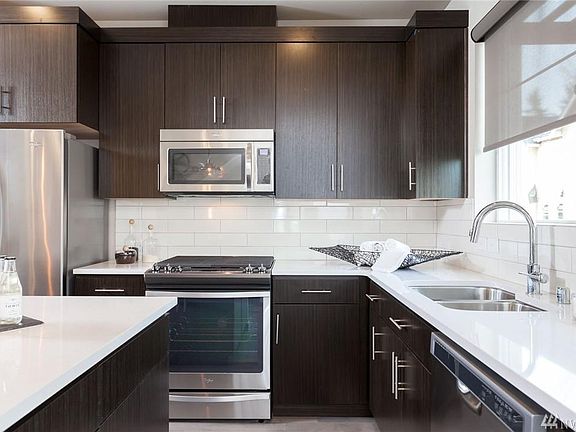 Live in modern luxury at The Parc in Renton Highlands. Across from the Starbucks, restaurants, pharmacy and grocery stores, you can walk to everything! You will fall in love with the bright large open floor plan. More details: - New home built in 2017 - 2 BR Townhouse corner unit with an attached side x side garage and a full (heated) storage room - 1368 sq feet - Modern fireplace - Main level is all hardwood - Modern kitchen with stainless steel appliances and bar counter - Kitchen, living, dining, powder room on the main level; master bedroom with dual vanity bathroom, 2nd bedroom also with en suite bathroom and laundry on upper level - Lots of amenities within 2-5min walking distance: Starbucks, Safeway Gas station, Taco Time, University of Washington Valley Medical Urgent Care, 24hr fitness, Value Pet Clinic, Petco, Walgreens pharmacy, USPS, UPS, Child care, Pizza (Domino's, Papa Murphy's, Little Caesars), lots of other restaurants, Auto Repair and many more amenities - Lots of plug points for all your devices! - Brand new TV pre-installed and wall mounted - Landscaping is maintained by HOA so you can just enjoy your home (Note: Furniture shown is not included)