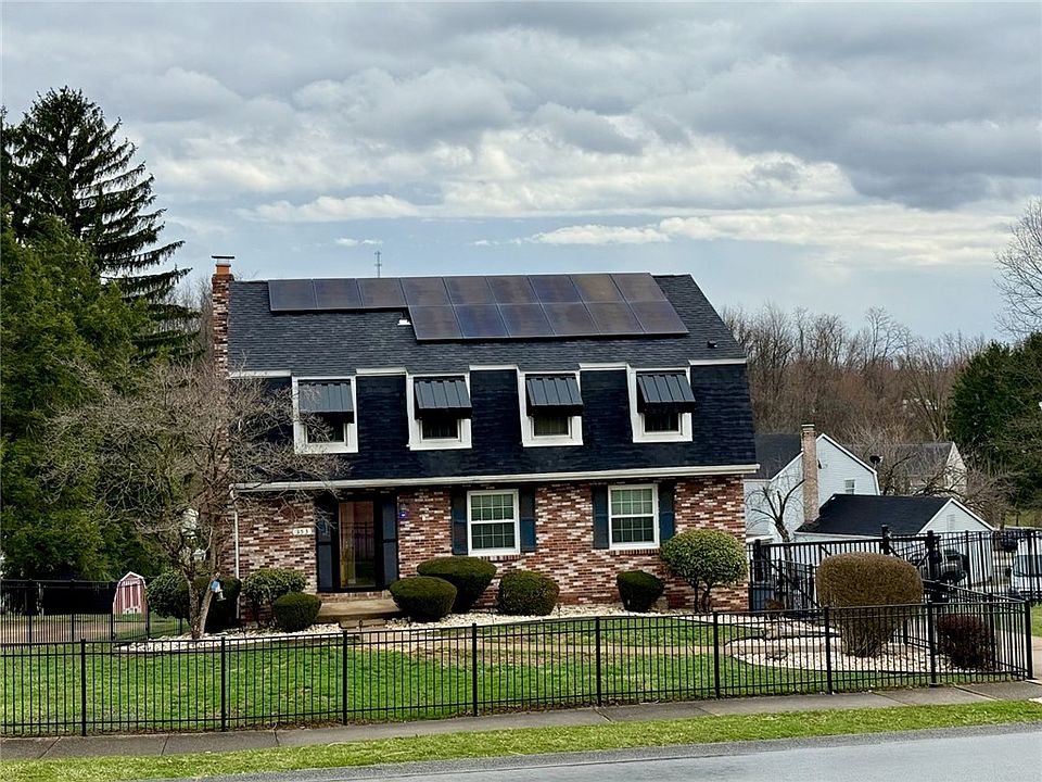 Beautiful updated home with tons of fabulous amenities. This home has been freshly painted, new carpet on first and second floor. The gleaming hardwood floors in the kitchen and the welcoming family room with fireplace leading out to the recently updated deck. There is a newer 50 year roof with solar panels, Gorgeous maintenance free fence with motorized gate with battery back up. The spacious primary bedroom has a warm and inviting bath. The gameroom is finished with a tv and bar that leads out to the newer hot tub with 60 inch tv and surround sound to relax after a long day. There is a doorbell on each floor, new pella storm door, newer awnings, windows,a/c. This home is ready to move right in and enjoy!