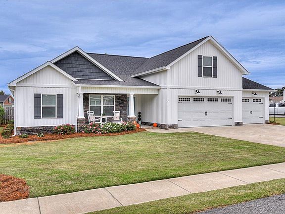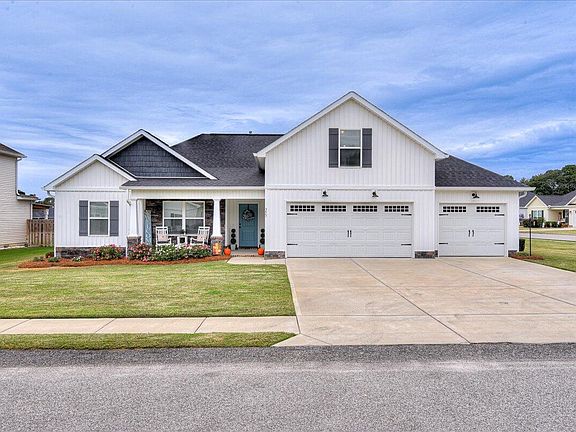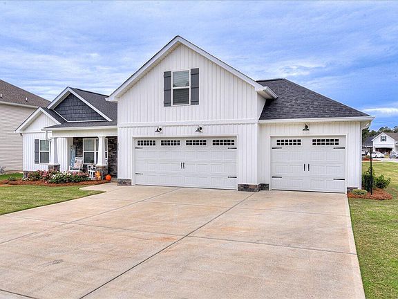 This gorgeous farm style home built in 2020 by Greystone Construction in desirable Sweetwater Landing development is in like new condition and conveniently located to shopping, interstate travel, or North Augusta, Augusta and Edgefield. This home sits on a corner lot, fully landscaped and leads to a cul-de-sac. A third car garage makes for a nice man cave or hobby space. This home features a gourmet kitchen, farmhouse sink, granite counter tops, stainless steel appliances and snack bar! This spacious, open floor plan makes for great entertaining. The owner suite is plenty spacious with tray ceilings, walk-in closet and oversized soak tub! There is a bonus room above the garage that can also be used as a 4th bedroom. Outside you'll appreciate the convenience of the side entry to the back yard for camper, boat or trailer storage. Also there is a matching storage building for lawn equipment, a garden bed, and covered back patio.