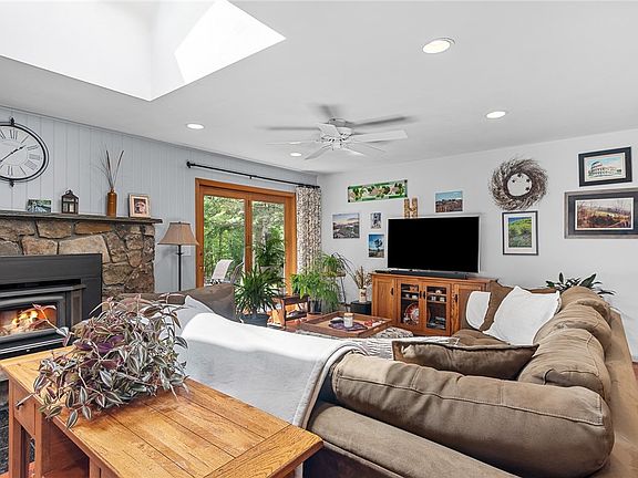 Impeccable Catskills ranch style home offering single-story living, open floor plan and a natural connection of indoor and outdoor spaces. Set on 5+ acres, the home features 3 bedrooms & 2.5 baths. The living room is anchored with a wood-burning, stone mantle, fireplace and is flanked by two sets of double doors leading to a floating deck. Skylights fill the open floor plan with natural light and illuminate the adjacent kitchen & dining rooms. Brazilian Cherry flooring in the living room and dining room offer a wonderful juxtaposition to the natural slate floors in the kitchen and entryway. A primary ensuite offers a walk-in closet and Corian-clad shower. Significant updates have been made to the home making this a truly turn-key experience. Additional features include an attached 3-car garage and finished basement media room. Two outbuildings offer studio space in a park-like setting. Enjoy close proximity to the Jefferson Art Center, the Middle Brook Mill & Cafe and The Mill Pond Inn.
