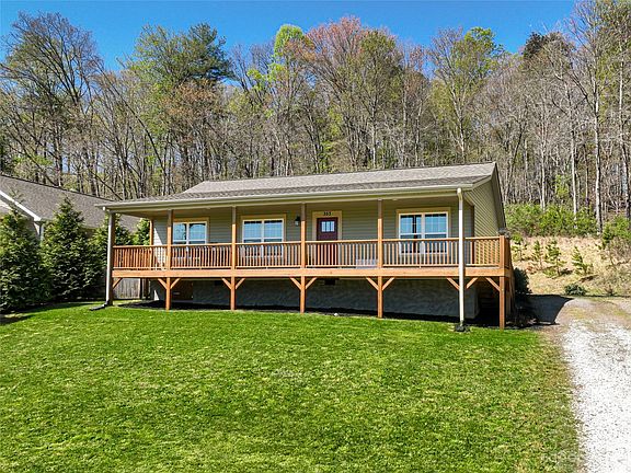 Turn-key ranch style home on nearly an acre with year round mountain views just west of Asheville! Welcome to 353 Youngs Drive Extension. A large and inviting covered front porch is the perfect space to take in the mountain views and entertain. Enjoy one level living with a bright and airy open floorplan that features a vaulted ceiling in the common living area, hardwood floors, stainless steel appliances, dining area, laundry room and more. The primary suite features a vaulted ceiling, walk-in closet, and en-suite bath. This split floorplan also features two guest bedrooms and a full bath. The back deck is covered and overlooks a fully fenced backyard.