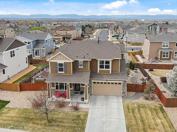 OPEN HOUSE MAY 10TH AT 12-2 P.M. Welcome to this pristine two-story home that perfectly combines comfort, functionality, and style. Ideally situated with an east-facing front—minimizing snow removal in the winter—and a west-facing backyard for enjoying stunning summer sunsets. Step inside to an open-concept main floor filled with natural light. The gourmet kitchen is a chef’s dream, featuring a large island, 42” cabinets, pantry, double ovens, and a gas cooktop. The adjacent dining area flows seamlessly into the spacious great room, complete with soaring ceilings and a cozy gas fireplace. Enjoy newer luxury vinyl flooring throughout the main level, upstairs hallway, and loft. Upstairs, the primary suite is a true retreat with a luxurious five-piece bathroom—featuring a walk-in shower and large soaking tub. You'll also find two additional bedrooms, a full bathroom, and a spacious loft perfect for a playroom, home office, or entertainment space. The unfinished basement provides an excellent opportunity for future expansion, already equipped with a bathroom rough-in and currently used as a home gym. Step outside to your backyard oasis, thoughtfully landscaped with a large patio, fire pit area, and a storage shed. The 3-car tandem garage offers ample parking and storage, and the sprinkler system keeps both the front and backyard lush and green. For location, the city of Brighton still offers a small town feel with local restaurants and shops in old town Brighton, and is close to the all the newer shopping in Prairie Center. Located 2 blocks from a large neighborhood park, bus stop, City Rec Center and Brighton Oasis water park for summer fun, and easy access to Highway 76 and Highway 85. We want to point out that the property taxes are significantly lower than the new builds and already has the fence, yard, and interior blinds for a lot of savings. This stunning home is the perfect blend of style, space, and convenience! More photos will be uploaded next week!