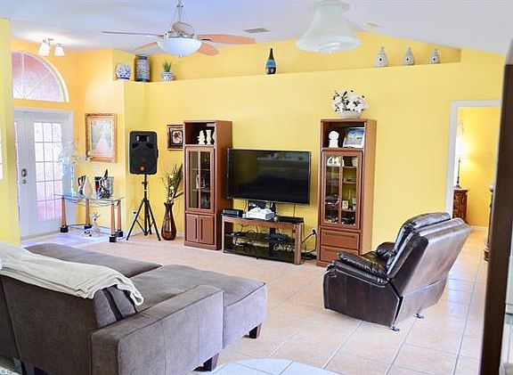 This beautiful, spacious home located in Naples is inviting with its open floor plan and high ceilings. 3 bedroom, 2 bathroom with a large paved driveway. Cozy open kitchen keeps everyone connected and engaged at all times. Large screened and tiled lanai offers ample space for entertaining your guests, an outdoor kitchen, hot tub or just to enjoy the view. A small taste of "Old Florida" right in your backyard. Large pine trees offer a wonderful view and shade. Sitting on 1.24 acres this completely fenced property allows privacy and security! included is a aluminum shed to store the outdoor essentials. Several fruit trees on property. Plenty of space to store trailers, RVs, boats, etc... both in the front driveway and backyard. This property has a lot to offer.