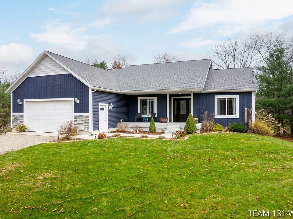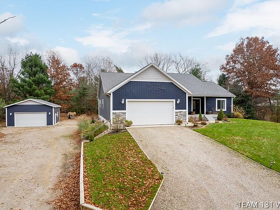 Welcome to your perfect retreat! This 5-bedroom, 3-full-bath ranch home sits on 2.75 acres of serenity and offers the ultimate in comfort and entertainment. Inside, you will find a spacious living room with a cozy fireplace. The open-concept kitchen and dining area make meals a breeze. The real delight is the walk-out basement, complete with a projection theater and wet bar for entertaining. Step outside to a spacious deck overlooking your 28 x 30 barn, offering endless possibilities. With ample room to roam and entertain, this ranch home is a lifestyle upgrade waiting for you. Schedule a showing and seize the opportunity to make it yours!