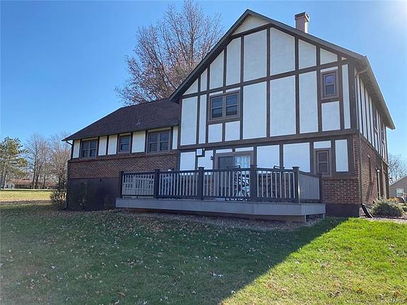 Welcome to this one-owner, custom-built home on over one acre in the heart of St. Charles within walking distance to the Katy Trail. Upon entering this English Tudor multi-level home, you will discover the unique floor plan, perfect for both entertaining and working from home. Experience the quiet neighborhood with expansive lawns and bluff views. Four bedrooms including a master suite on the upper level with updated baths. The main floor with a spacious living room and wood-burning fireplace opens into a formal dining room, adjacent to the eat-in kitchen with sparkling solid surface countertops. A lower level fireplace adorns the family/addition room with a half bath. Through the garage you will find the walkout sub-level basement which could easily be turned into a media room or great space for the kid that just won't move out - you won't even know they are there. Enjoy the serenity of the no maintenance, composite deck located off the lower level family room.Seller is licensed agent