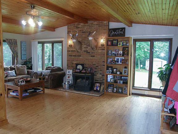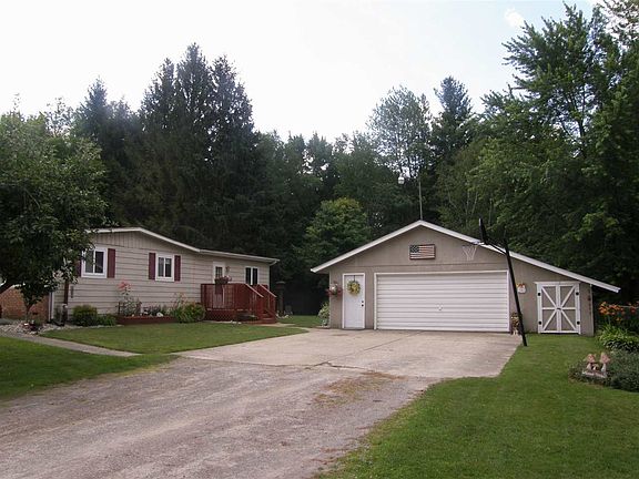 Beautifully landscaped 4 bedroom home in excellent condition. 24 x 40 detached garage with attached storage shed. Roof replaced on home and garage in 2001. Replacement windows in 2009. Natural gas, city water, & septic. Full partially finished basement. Spacious family room with gas fireplace. All the appliances included plus the dog kennel stays. Beautiful lot backs up to a wooded area. Move in ready.